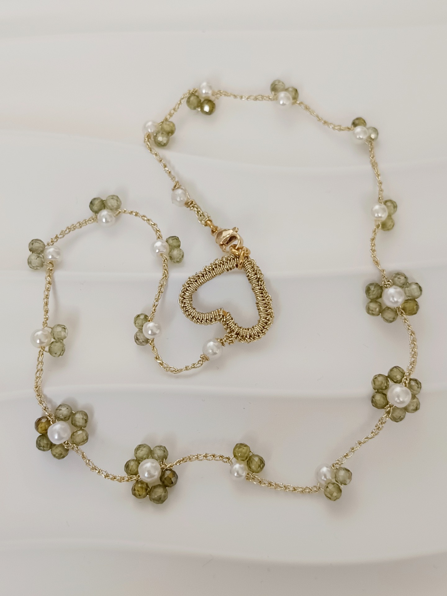 Všetky náhrdelníky sú ručne háčkovaná bižutéria. Materiál: kvalitná niť s jemnou kovovou prímesou , sklenené alebo prirodné koraliky, zapínanie z nerezovej / chirurgickej ocele. Bižutéria je jemná a nie je určená na každodenné nosenie. Predlžovanie životnosti výrobku: pred spaním a sprchovaním odložiť ,vyhýbať sa kontaktu s parfumom a krémami, chrániť pred ostrými predmetmi, nahrdelník nenaťahovať.